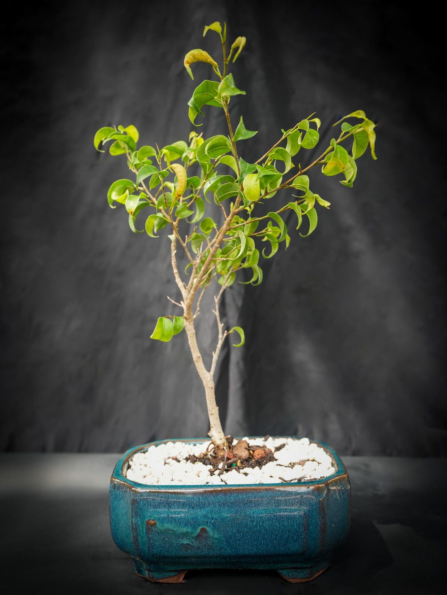 These are small banyan size trees. Range from 8-12 inches tall. Roots from branching make them amazing. Dwarfed banyan.