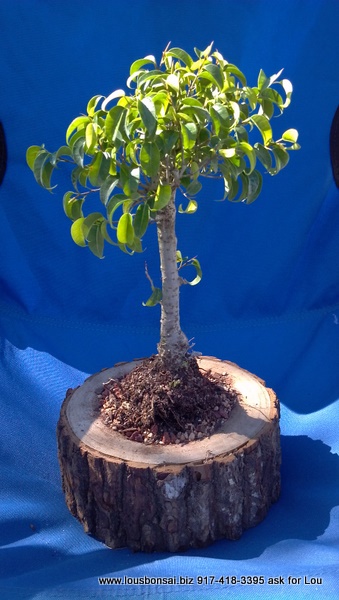 HERE IS THE STORY. I HAVE A WOOD MAKER WHO SPECIALIZES IN WORKING WITH COLLECTED NATURAL WOOD MATERIAL. THE WOOD MAY VARY BUT THIS IS WHAT YOU RECEIVE. LOUS BONSAI IS THE ONLY BONSAI NURSERY OFFERING THIS. APPROX 6-8 INCHES TALL THE WOOD IS HAND CREATED SO THE TREE IT SITS IN ALLOWS IT TO GROW INSIDE. NO NEED FOR A BONSAI POT. THE TREE IS THE POT. WE ARE MAKING THEM AS WE SPEAK. ALLOW ONE WEEK APPROX FOR THIS TREE TO SHIP. IF YOU WANT A SPECIAL BONSAI TREE CONTACT LOU DIRECTLY. LIMITED NUMBER. YOU CAN PURCHASE THE TREE POT ALONE IF YOU WOULD LIKE.