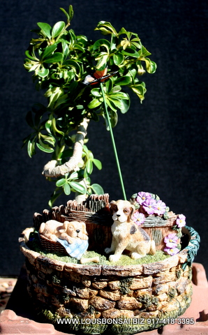 Indoor Umbrella Bonsai Tree in a Dog Pot