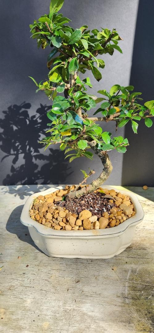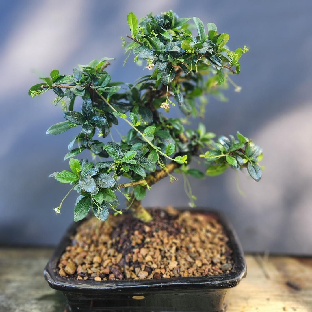 This imported from China Fukien Tea bonsai tree is well known for its ability to produce white flowers as well as red berries. This tree will produce both many times each year. Indoor tree which needs a window and like to be wet then dry is terrific. It is strongly suggested that you purchase the humidity tray to capture water when watering and keeping moisture around the tree.
