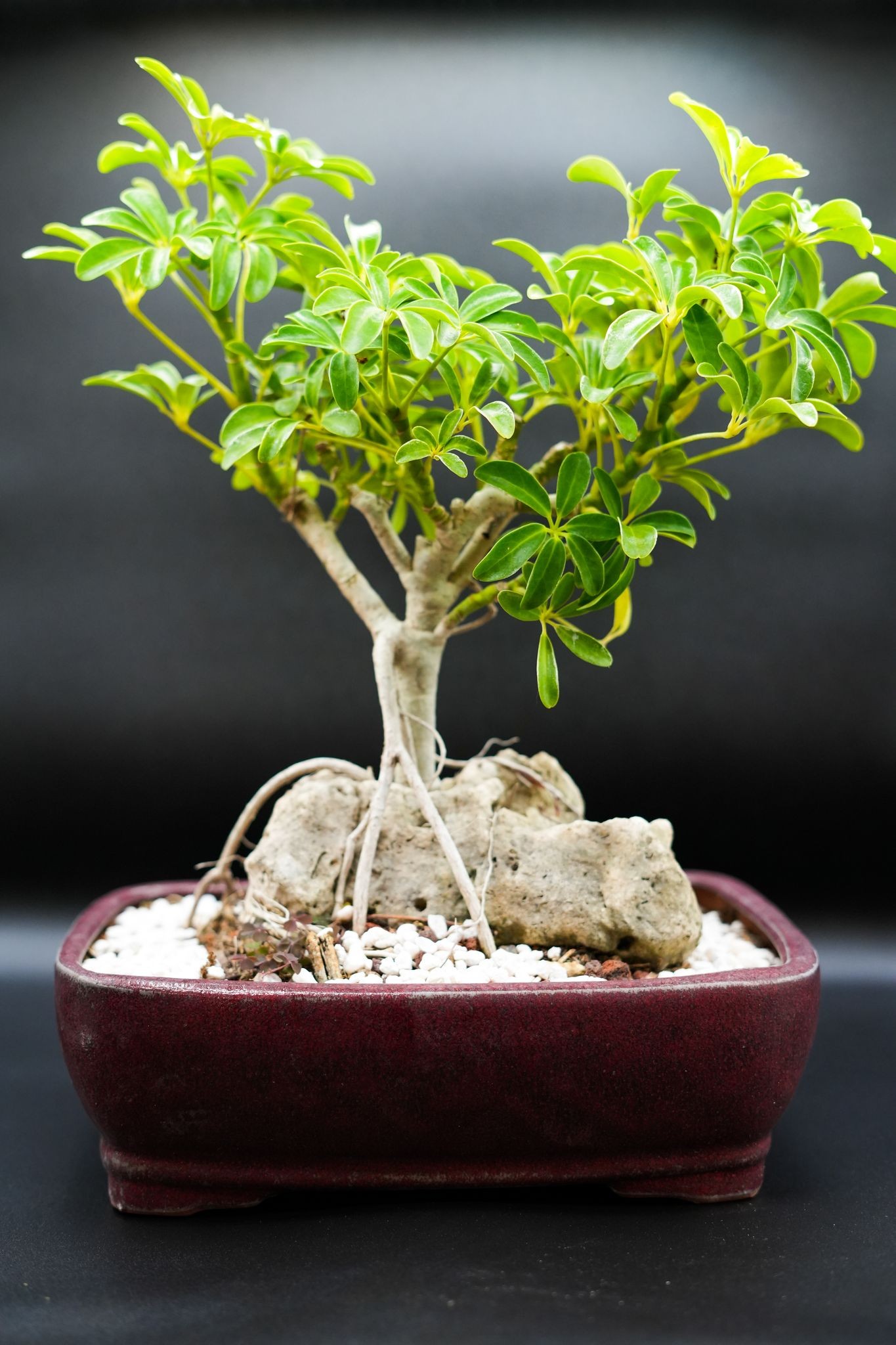 TREE: DWARF UMBRELLA BONSAI TREE grown over rock